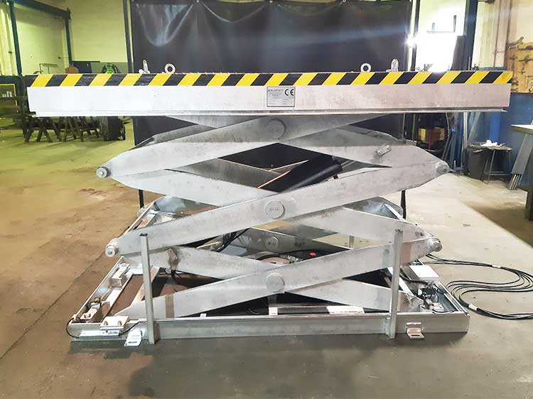 Designed for applications that require added height, our double scissor model holds up to 5,000 kg and can extend up to 4 meters. It adheres to UNE EN-1570 standards and offers a lift range of 1.2 times its length. The folded height is moderate, making it compatible with many facility setups.